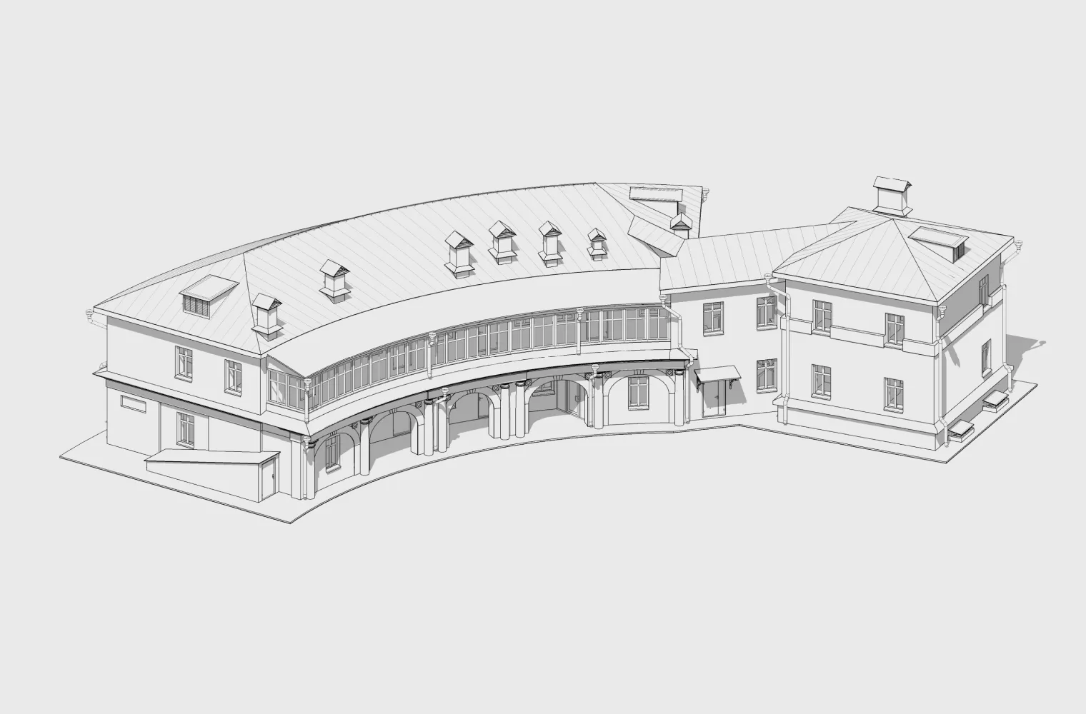 Строительство главного дома усадьбы Охотниковых в стиле классицизма.